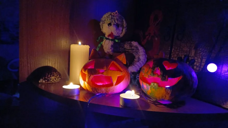 Guess what kind of movie is on in the background ~( ̄▽ ̄)~*